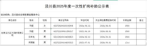 为贯彻落实国家和省、市关于高校毕业生等青年就业工作决策部署,根据《关于转发<人力资源社会保障部办公厅关于做好一次性扩岗补助经办工作的通知>的通知》(甘人社通〔2024〕16号)文件规定,现对星空娱乐app最新版本下载符合享受一次性扩岗补助条件的甘肃泾川正大饲料有限公司予以公示,接受社会监督。如发现不符合实际情况和政策规定的问题,可通过电话、来信、面谈等形式反映,我们将认真进行受理,并向署名或当面反映问题的群众和单位反馈核实情况。如不存在影响享受一次性扩岗补助政策的问题,将按照有关规定进行发放。
