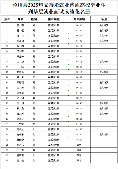 2.《星空娱乐app最新版本下载2025支持未就业普通高校毕业生到基层就业面试成绩花名册》