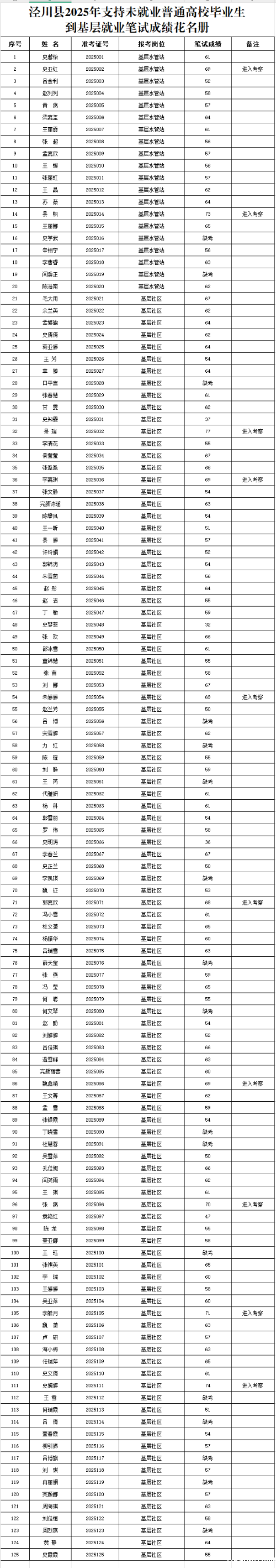 附:1.《星空娱乐app最新版本下载2025支持未就业普通高校毕业生到基层就业笔试成绩花名册》