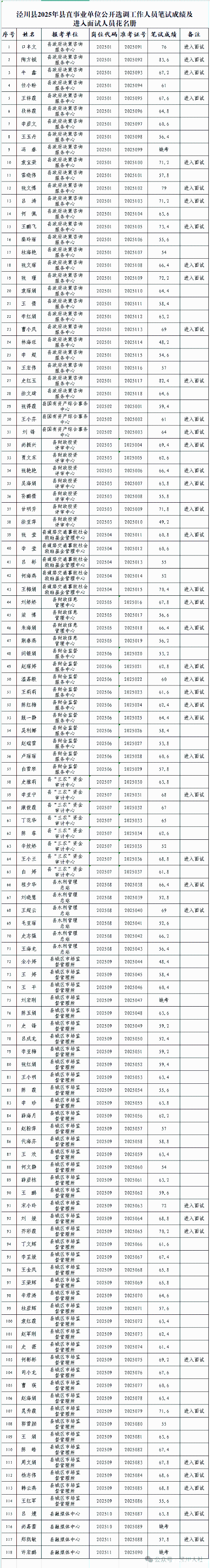 附件:星空娱乐app最新版本下载2025年县直事业单位公开选调工作人员笔试成绩及进入面试人员花名册