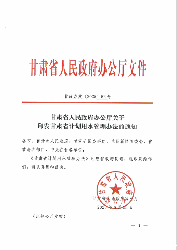 甘肃省人民政府办公厅关于印发甘肃省计划用水管理办法的通知