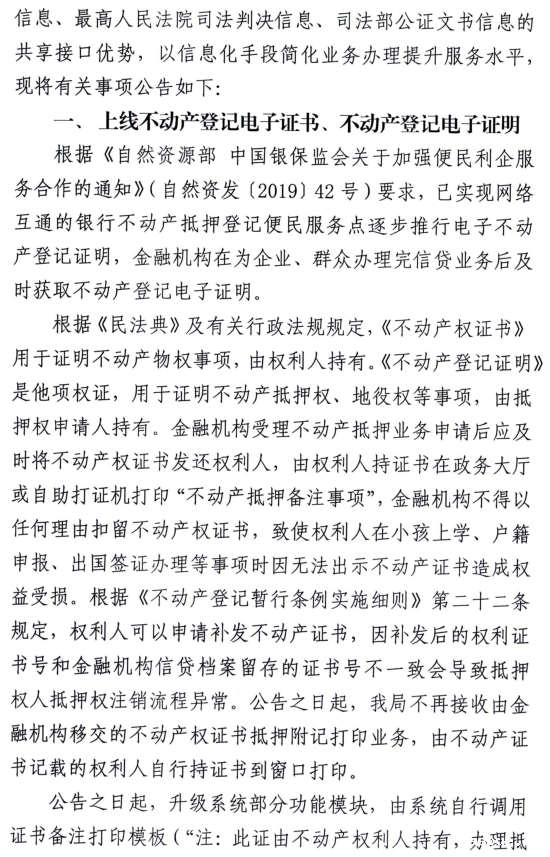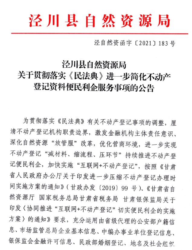 关于贯彻落实《民法典》进一步简化不动产 登记资料便民利企服务事项的公告