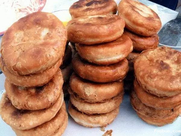 走在泾川的大街小巷,忽闻葱花极荃之味充满时空,人们围成一圈,密密层层,这便是看打火烧子。临街的铺面门外,架子上支着大鏊,碗大的石炭火红得发黃,案子上,大油成桶状,葱花一筛子,调料一字摆开,一个火烧子擦一把油,包两把葱花,没有大葱是万万做不成的。由于把最荃的油和葱花加倍入足,再配适中调料,那鏊上下有大火,油吱吱响着,鏊温温地煎着,一反一正,时间快,油浸入,荃味不失不串味,半小时不到,其色泽黃葱葱红艳艳,其质脆生生的酥、柔、烧、香的妙物出鏊了。