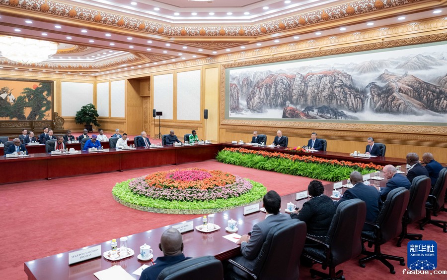 8月20日下午,国家主席习近平在北京人民大会堂集体会见出席全国人大加入各国议会联盟40周年纪念活动暨第六次发展中国家议员研讨班外方议会领导人。新华社记者 翟健岚 摄