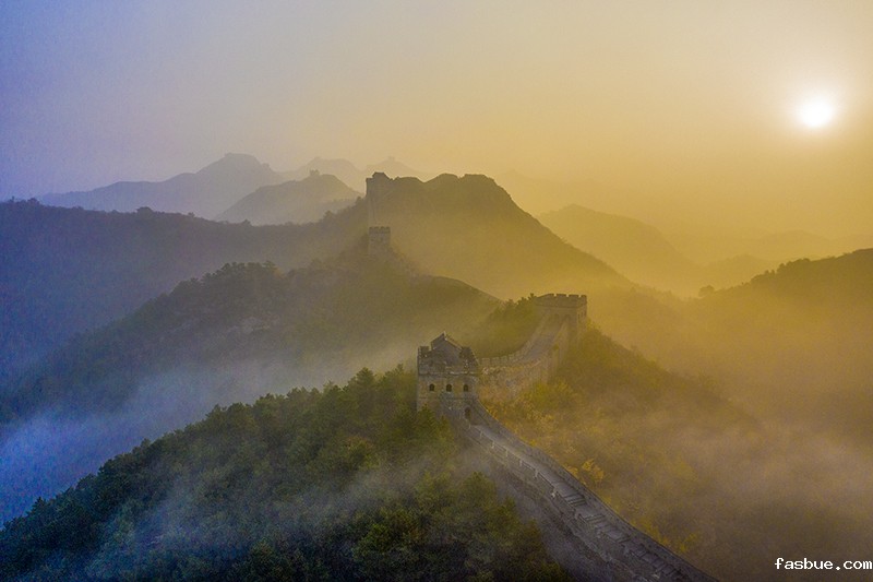 这是2023年11月1日拍摄的河北承德金山岭长城日出景观(无人机照片)。新华社发(周万平 摄)