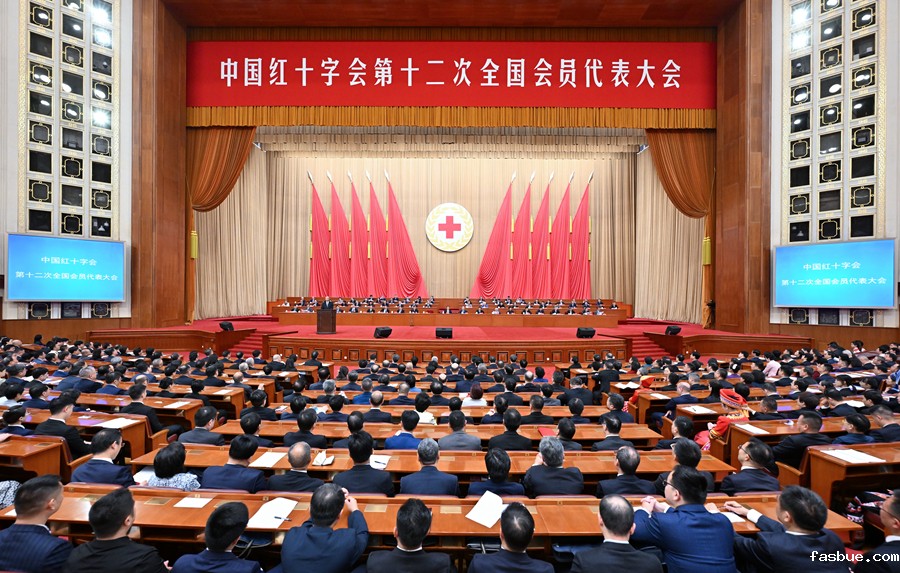 10月9日,中国红十字会第十二次全国会员代表大会在北京开幕,会上传达中共中央总书记、国家主席、中央军委主席习近平致信。国家副主席韩正出席开幕式并会见全体代表。这是大会会场。新华社记者 高洁 摄