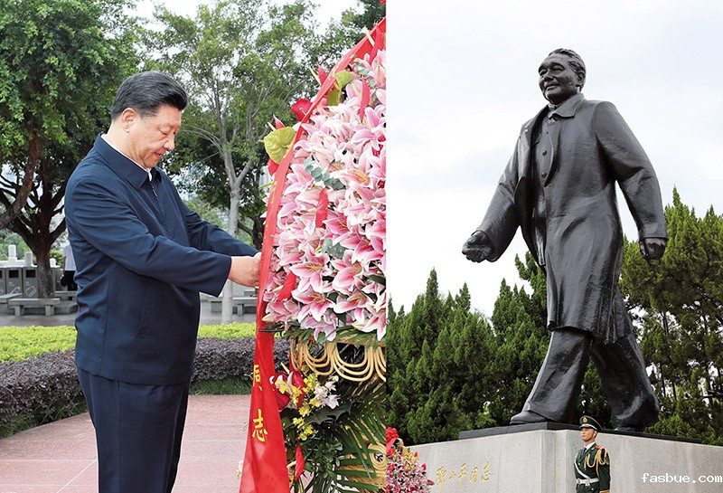 2020年10月14日,深圳经济特区建立40周年庆祝大会在广东省深圳市隆重举行。中共中央总书记、国家主席、中央军委主席习近平在会上发表重要讲话。这是当天下午,习近平来到莲花山公园,向邓小平同志铜像敬献花篮。新华社记者 王晔/摄