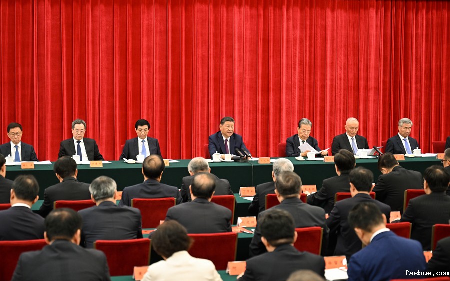 中共中央政治局常委赵乐际、王沪宁、丁薛祥、李希,国家副主席韩正出席座谈会,中共中央政治局常委蔡奇主持座谈会。