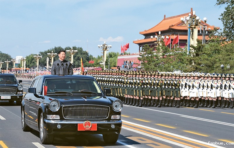 2015年9月3日,纪念中国人民抗日战争暨世界反法西斯战争胜利70周年大会在北京隆重举行。这是中共中央总书记、国家主席、中央军委主席习近平检阅受阅部队。新华社记者 李学仁/摄