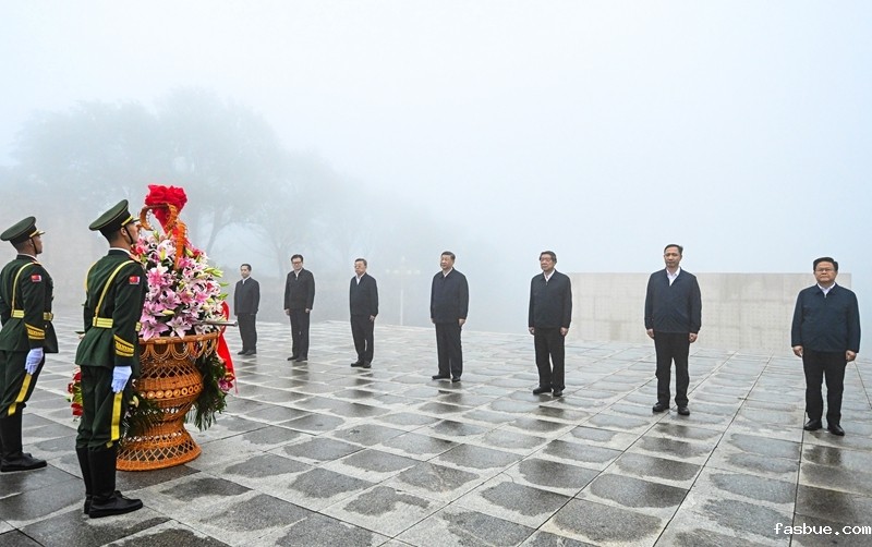 7月7日至8日,中共中央总书记、国家主席、中央军委主席习近平在山西考察。这是7日下午,习近平在位于阳泉市狮脑山的百团大战纪念碑广场,向八路军烈士敬献花篮。新华社记者 燕雁 摄