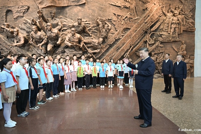 在纪念馆大厅,习近平同前来参观的青少年学生和纪念馆工作人员亲切交流。他说,88年前的今天发生的“七七事变”,是中华民族全面抗击日本侵略者的起点,前事不忘、后事之师,到这里来就是接受精神洗礼。广大青少年生逢其时,要赓续红色血脉,树立强国有我的远大志向,做堂堂正正、光荣自豪的中国人,勇担民族复兴的时代大任。