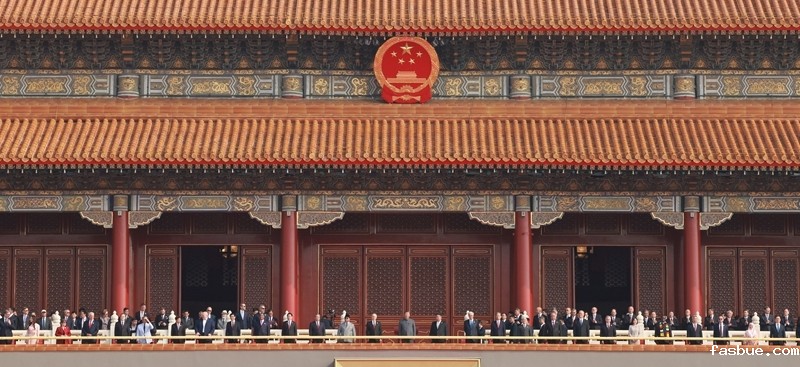 8时55分,习近平等中外领导人来到天安门城楼主席台,全场爆发出雷鸣般的掌声。