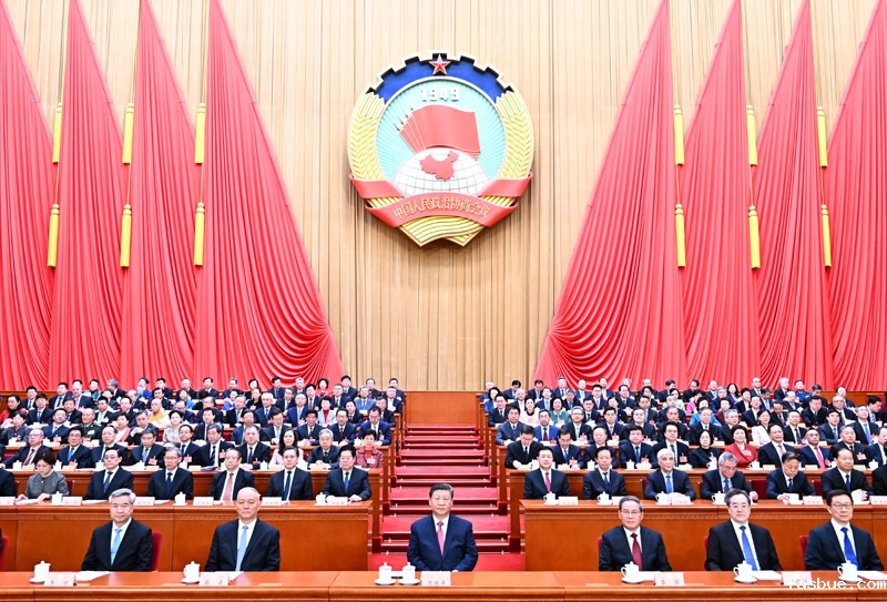 3月10日上午,中国人民政治协商会议第十四届全国委员会第三次会议在北京人民大会堂闭幕。这是习近平、李强、蔡奇、丁薛祥、李希、韩正在主席台就座。新华社记者 燕雁 摄