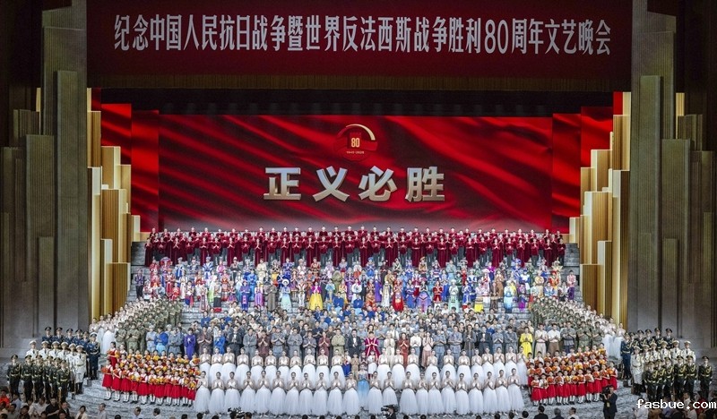 9月3日晚,纪念中国人民抗日战争暨世界反法西斯战争胜利80周年文艺晚会《正义必胜》在北京人民大会堂隆重举行。