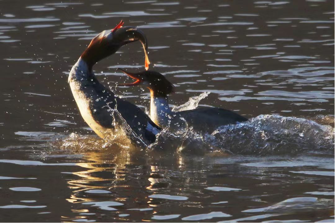 摄影爱好者张先生是这里的“常客”,他的镜头里记录了汭河水鸟的多样姿态。“从春天的白鹭筑巢,到秋天的候鸟停留,汭河的生态一年比一年好。最近我还拍到了戴胜、黑鹳这些以前少见的鸟类,这说明咱们的河道环境越来越适合野生动物栖息了。”张先生展示着相机里的照片,画面中,黑鹳羽色鲜亮,正叼着小鱼停在水中展翅嬉戏,生动有趣。