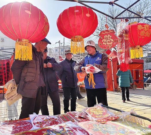 1月21日,群众在灵台县什字镇大集上选购灯笼。