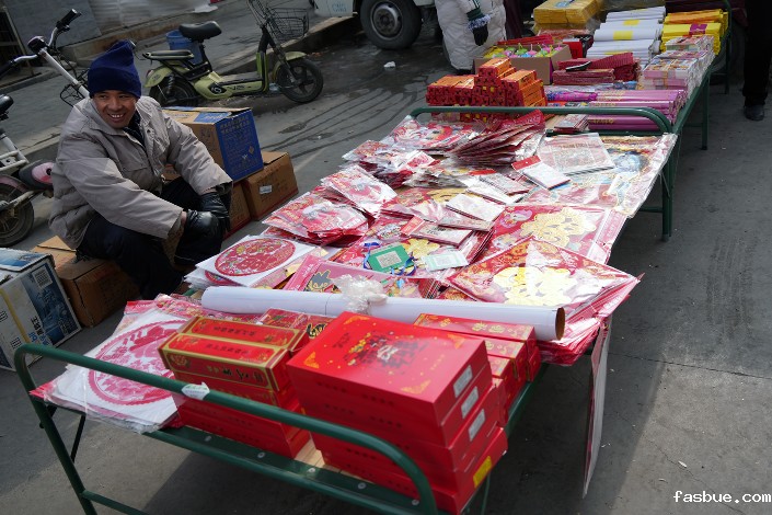 1月17日,在崆峒区四十里铺镇,售卖春联和“福”字的小摊。