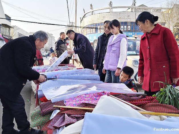 在灵台县什字镇的大集上,同样年味十足,生肉区、蔬菜水果区、生活用品区划分明确,新鲜的肉类、蔬菜、水果,色彩缤纷的糖果、炒货一应俱全,生活用品、服装鞋帽等摆放整齐,吃的、穿的、用的应有尽有,各个摊位上都围满了购买年货的人群。