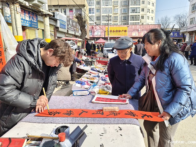 1月21日,灵台县什字镇集市上,手写春联添年味儿。