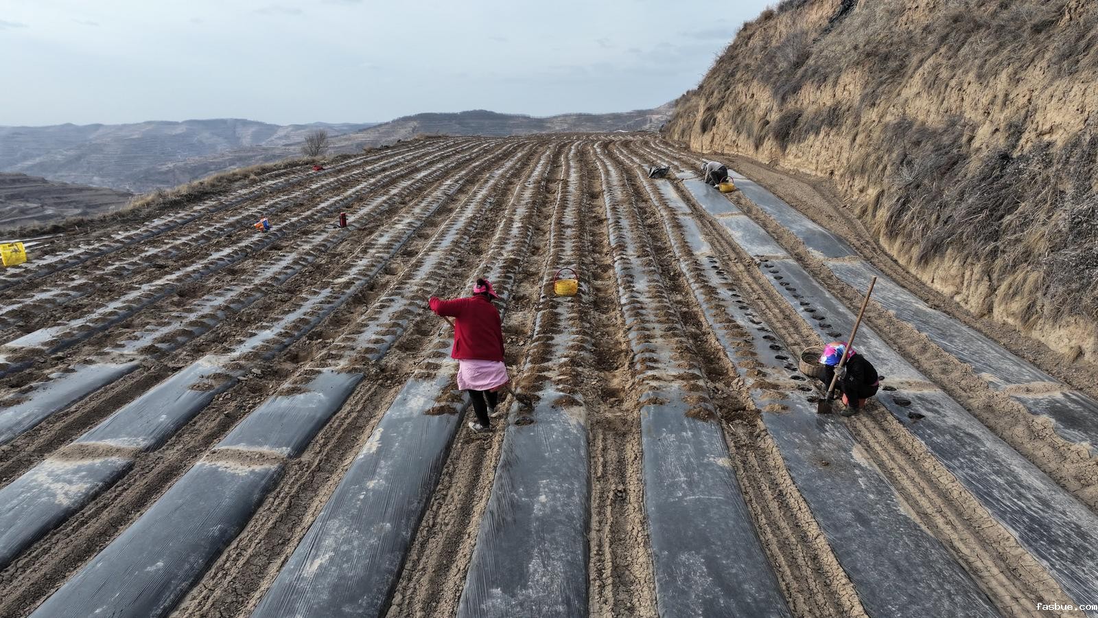 一年春作首,百业农为先。行走在春日庄浪的阡陌间,银黑色的地膜宛如一幅传统的水墨画,与正在辛勤劳作的群众、身穿红马甲的党员干部共同构成了一幅春意盎然的“春耕图”。